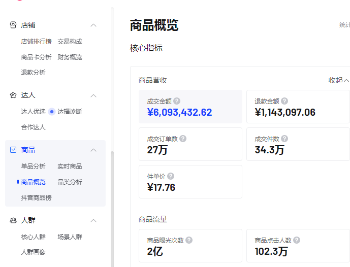 商家视角下能看到自己商品带过货的所有的直播间数据,更多是站在生意的角度上对日销复盘,并基于数据调整渠道策略、商品策略、内容策略和投放策略。