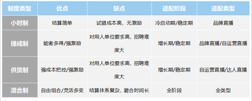 小时制、提成制、供货制、混合制——4种主流的主播薪资结算方案,下面我们来依次介绍一下每种方案的特点和优缺点。