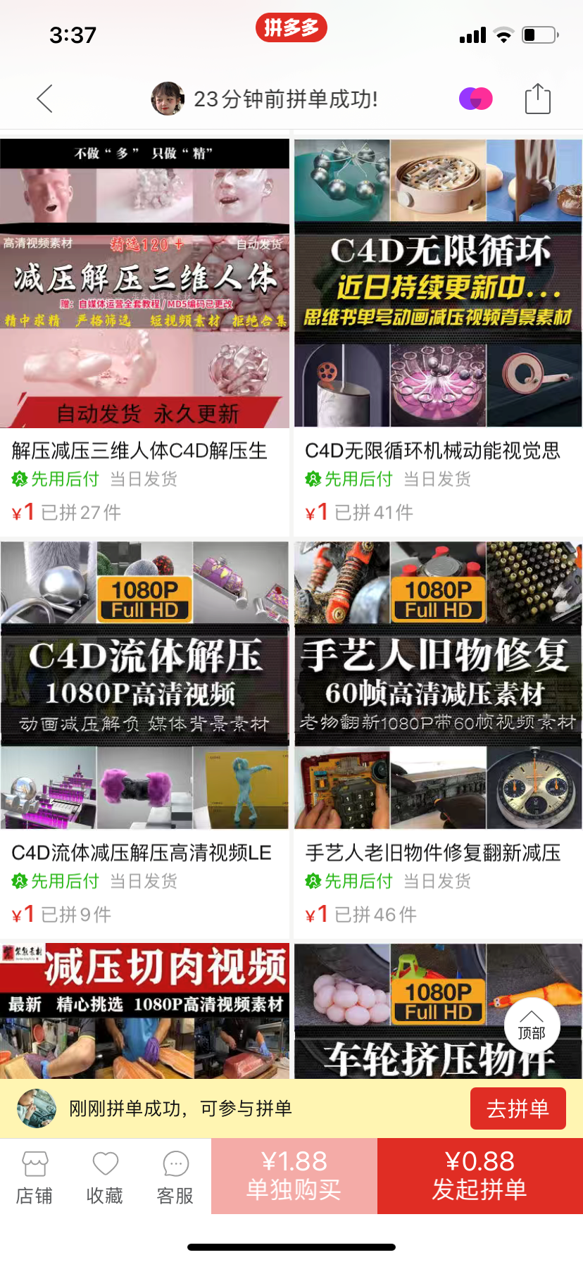 后来打开拼多多,继续搜关键词:“视频素材 解压”,果然就找到了,一下子就打开了新世界。