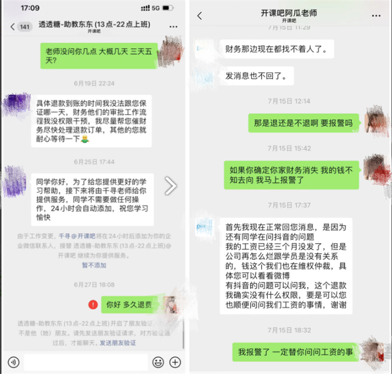 平台承诺7天无理由退款,自己在第三天申请退款,但是助教老师一直说财务在走流程。后来因为财务无法联系到,平台拖欠工资,导致一直没退成功,至今已经过去了4个多月。
