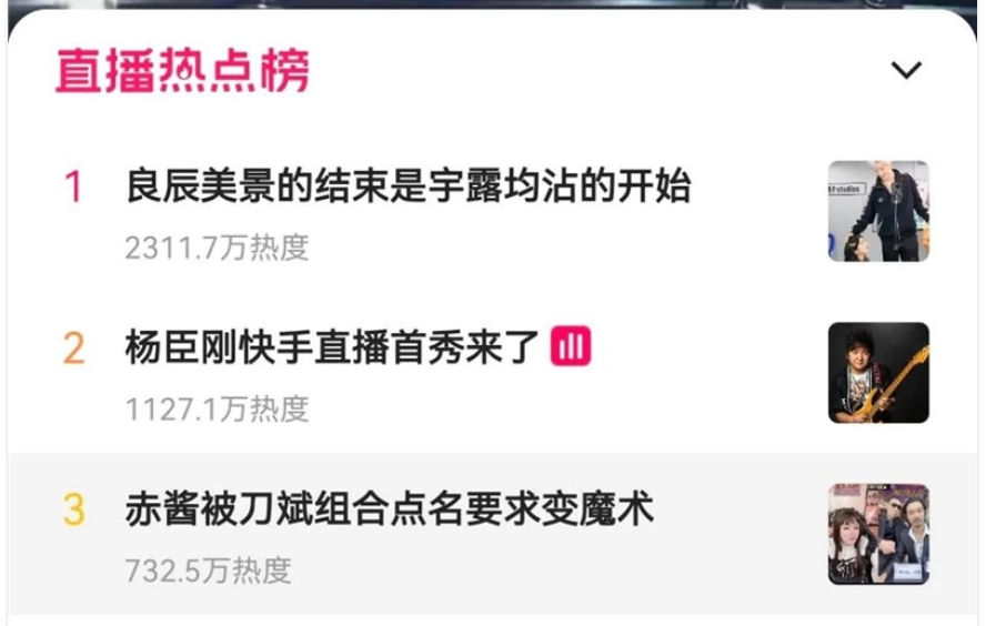 快手直播推出新功能“直播热点榜” 显示当前直播热门话题